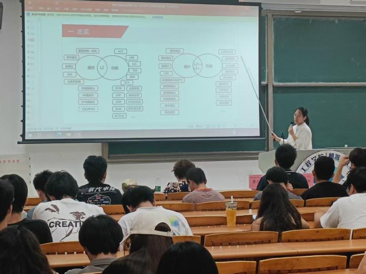 杨素华以“智能驾驶开发:从理论到落地的全流程透视”为题,以广汽丰田新一代TSS智能安全套装为例,拆解了智驾产品工程师的工作流程。她指出,盲区雷达开发需经历需求分析、传感器选型、算法调试、实车标定四大阶段,其中多传感器融合技术,如毫米波雷达与视觉系统的协同,是提升探测精度的关键。针对学生关注的职业门槛,杨素华建议:智能驾驶领域需要复合型人才,除了掌握车辆工程知识,还需理解深度学习框架和车载通信协议,在校期间参与竞赛实践将显著提升竞争力。