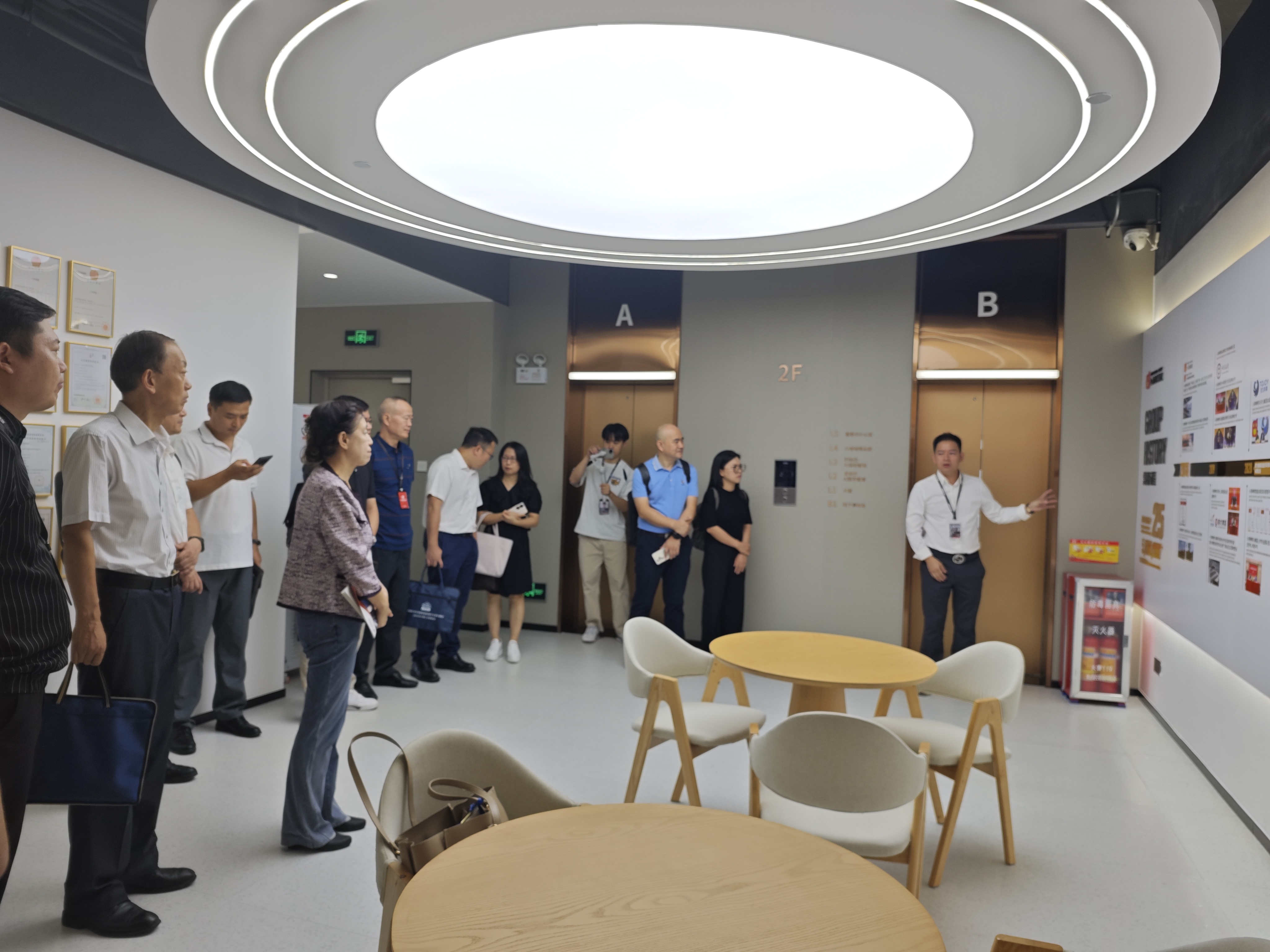参观环节,在小雨嘀嗒罗聪总裁、马宇灏总经理的陪同下,参会代表参观了线索AI学院,详细了解实训基地的运行模式与教学设备配置,实地考察企业在人工智能、大数据等领域的创新成果。小雨嘀嗒相关负责人系统介绍了公司的发展历程、业务架构,以及在数字产品服务、AI技术、新能源汽车等方面的战略布局。
