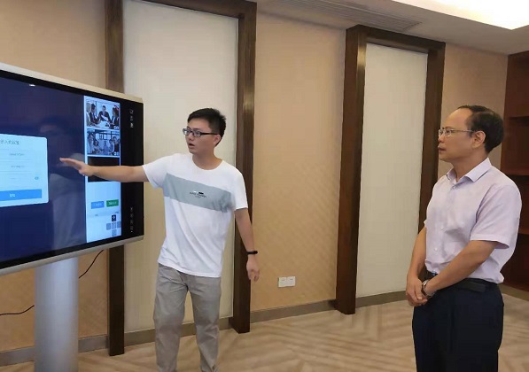 期间,刘泽奖不时询问产品性能、市场应用等情况,表示该产品功能多样,操作简介便捷,在同类产品中有一定的竞争力,适用于智慧教室,希望双方可以这一方面进行交流与合作。