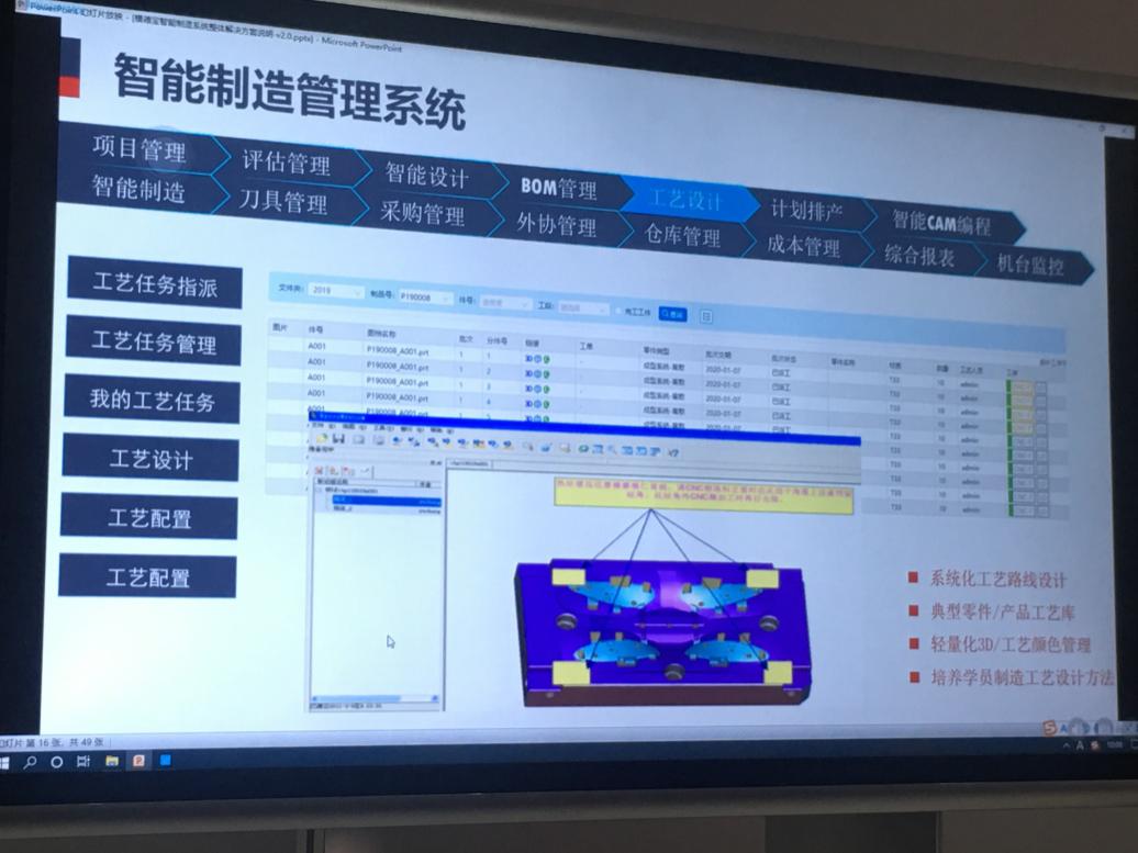 企业工程师曾佑宝进行了智能制造管理系统的操作演示,介绍了针对某汽车发动机端盖零件从产品建模、加工工艺分析、刀具路径编程、加工CNC机床参数设定、CAE有限元分析、模拟仿真、机械手夹具设计到机床加工等环节的教学思路。
