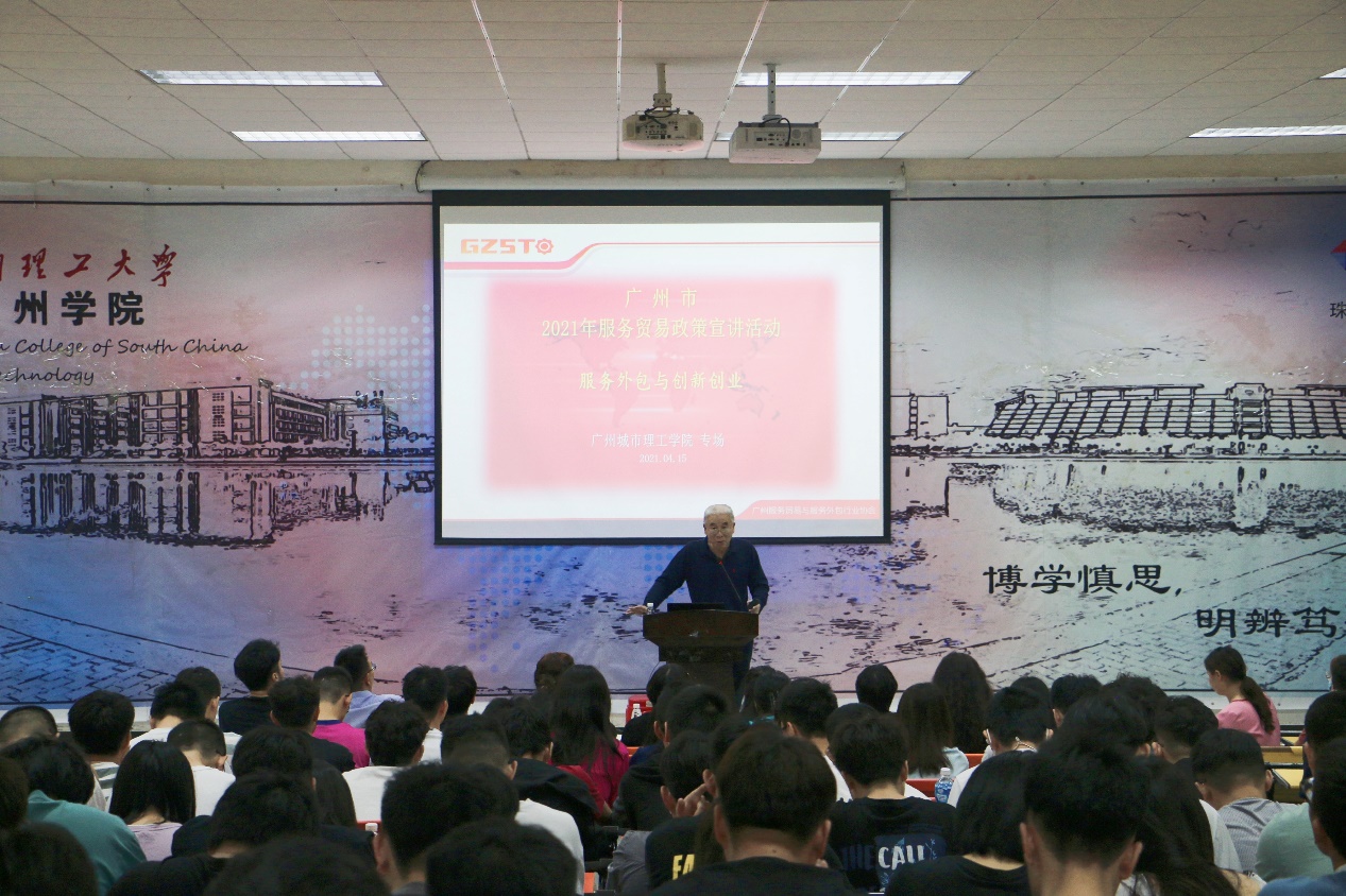 本网讯(记者 杨宜英) 为了助推服务外包企业加大引才育才力度,提高伟德国际victor1946毕业生职业素养,4月15日上午,伟德国际victor1946,伟德bv1946官网联合汽车与交通工程学院、机械工程学院在A7-101为学生开展了服务外包与创新创业讲座。本次讲座特邀广东省服务外包产业促进会、广州服务贸易与服务外包行业协会专家顾问王庆元主讲,伟德国际victor1946院长马乐,教务处常务副处长刘佳,伟德国际victor1946相关负责人,汽车与交通工程学院就业相关老师出席本次讲座。