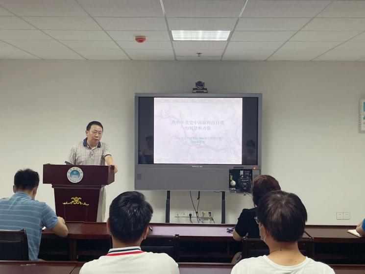陈方珍以“习近平总书记在中国科学院第二十次院士大会、中国工程院第十五次院士大会和中国科协第十次全国代表大会上发表的重要讲话”为主线,强调科技自立自强“使命在肩、责任重大”,要以党史学习教育为契机,从党史中汲取科技自强的智慧力量,牢牢把握创新主动权、发展主动权,勇于攻坚克难、追求卓越、赢得胜利。