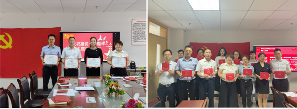 会上,经过支部党员大会的表决,同意接收高睿一同志为中共预备党员。接着,党支部举行了集体政治生日会。党支部书记林叙群代表学校向获得“优秀共产党员”称号和“优秀党务工作者”称号的同志颁发荣誉证书,并向党支部全体党员颁发了党员政治生日贺卡,政治生日贺卡上记录着每个党员的入党日期、党龄、入党誓词和支部寄语。在林叙群带领下,全体党员面向党旗,高举右拳重温入党誓词,一句句铿锵有力的誓词坚定了共产党人终身坚守、矢志不渝的信念。
