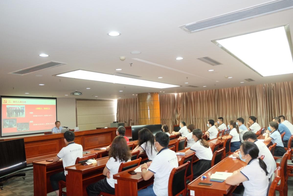 随后,他带领大家重温了习近平总书记在建党百年庆祝大会上的重要讲话:“以史为鉴、开创未来,必须团结带领中国人民不断为美好生活而奋斗。江山就是人民、人民就是江山,打江山、守江山,守的是人民的心。中国共产党根基在人民、血脉在人民、力量在人民。中国共产党始终代表最广大人民根本利益,与人民休戚与共、生死相依,没有任何自己特殊的利益,从来不代表任何利益集团、任何权势团体、任何特权阶层的利益”。他通过我国脱贫攻坚战中取得全面胜利、新冠疫情防控取得重大战略成果、教育部出台“双减”政策等具体实例,生动讲述了中国共产党是如何践行人民立场的。