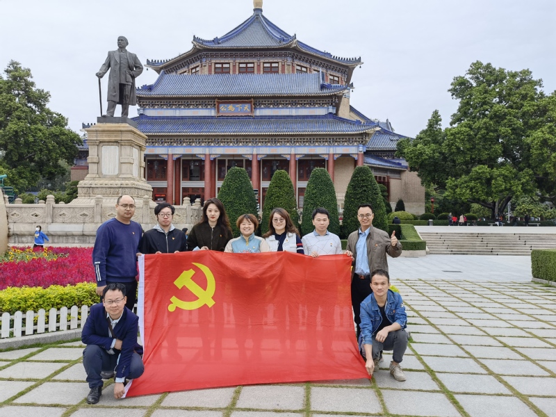 广州中山纪念堂是广州人民和海外华侨为了纪念伟大的革命先行者孙中山先生而筹资兴建的纪念性建筑物,是一座宏伟、壮丽的八角形宫殿式建筑,孙中山雕像庄严矗立在纪念堂前,纪念堂正面抱厦上下檐间,孙中山手书“天下为公”,蕴意深刻:国家为人民所共有,政府为人民所共管,国家利益为人民所共享。通过纪念堂陈列展出图片、实物及讲解员详细讲解,党员们进一步了解了孙中山先生生平和革命事迹,深刻感受到了革命前辈“天下为公”的博大精神和“振兴中华”的崇高爱国情感。